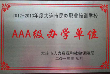 2012-2013年度大连市民办职业培训学校AAA级办学单位
